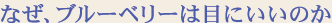 ブルーベリーには、青紫色系の色素成分「アントシアニン」が豊富に含まれており、目の健康に良いことが知られています。普段から目を酷使している方や加齢によって視覚機能が衰えた方から高い人気を集めています。アントシアニンには、眼から入ってきた光の刺激を信号に変えて、脳にそれを伝達する「ロドプシン」という物質の再合成を活発にする効能・効果があります。この働きにより、眼精疲労の予防・改善効果、視力の維持・回復など、目の機能を良くする効用があり、近視・老眼・涙目・乾き目・白内障・緑内障などの改善に効果が認められています。